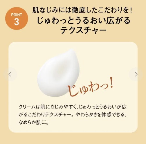 保湿力が高く、乾燥しやすい肌を長時間うるおいで守るのが特徴です。