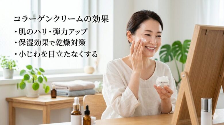 まずは、コラーゲンクリームの効果についてお伝えします。コラーゲンはお肌のハリや弾力を保つために欠かせない成分です。