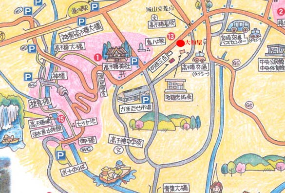 旅館 大和屋は、高千穂観光の中心スポットに近い便利な立地にあります。
