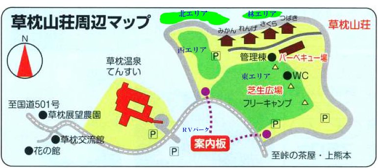 キャンプ場には、山側から入ってきたため管理棟がよくわからず、近くの草枕温泉てんすいで、尋ねたところ、こちらの施設が主な受付だったようでした。