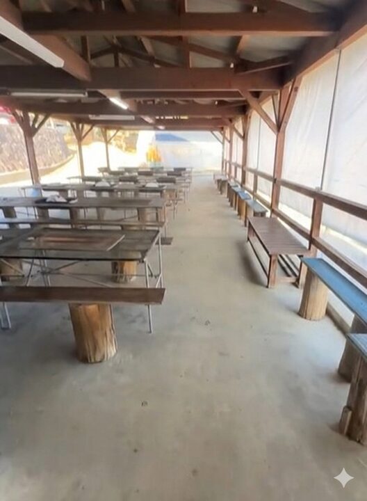 管理棟の階下には、炊事場、バーベキュー場、トイレがあります。